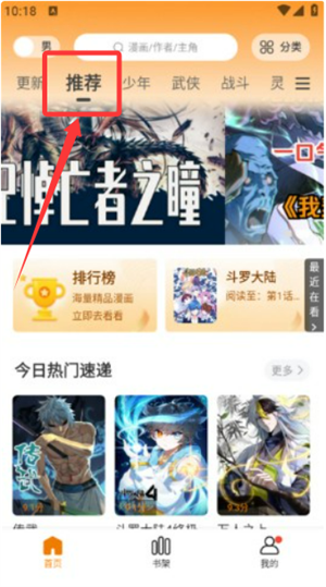 2、主页推荐部分显示各种选定的漫画,并有排名等栏目。