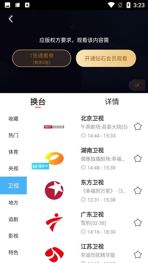 5、有些电视台需要会员才能观看,每个人都可以选择观看。