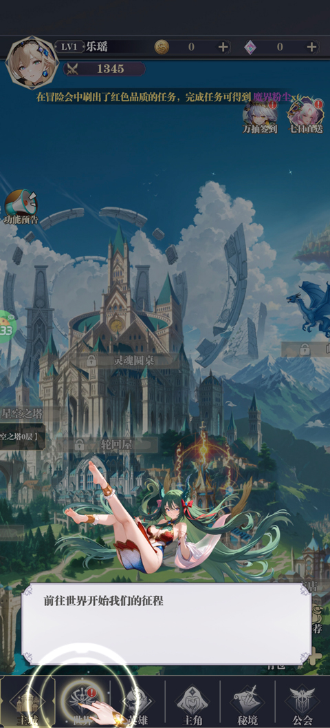 3、进入游戏后会有个新手教程,跟随引导点击世界。