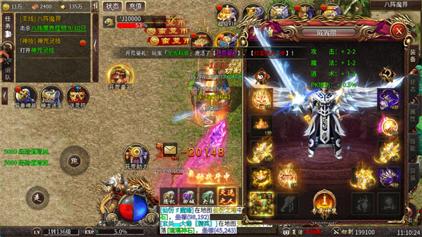 3、玩家可以自动战斗,也可以选择手动战斗,极为方便,击杀怪物可以掉落大量武器装备,可以提升自身的战力。