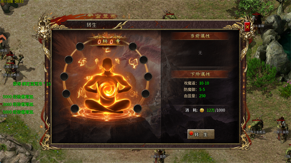 6、玩家还可以直接消耗金币转生,也可以达到提升祝融之力的效果。