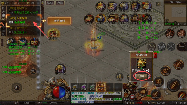 3、随后点击屏幕左上角任务栏的“新手福利”。