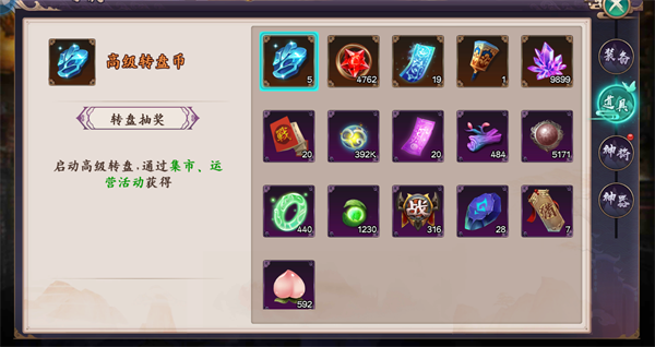 3、道具分别对应游戏中道具产出以及消耗的玩法,如果想知道自己还能在游戏内操作什么,可以去查看下道具栏哦。