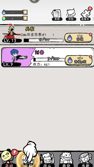 6、然后在英雄界面可以对英雄和主角进行升级培养。