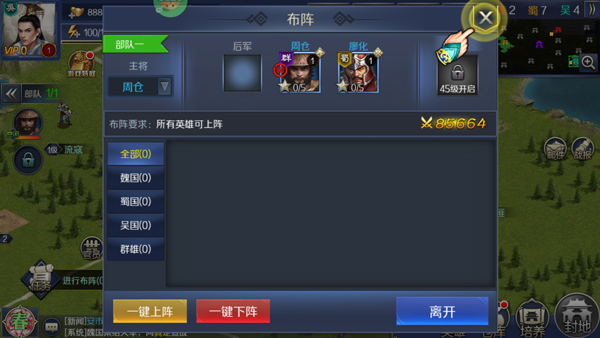 2、进入游戏如图,玩家可招募英雄排兵布阵。