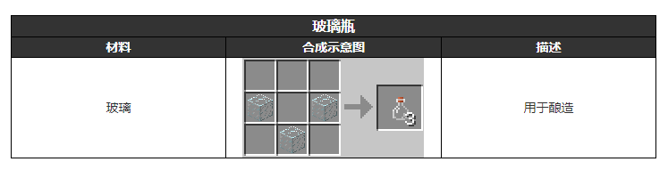 1、《我的世界》中的玻璃瓶是专门用来酿造东西的,只需要用玻璃就可以合成玻璃瓶了。