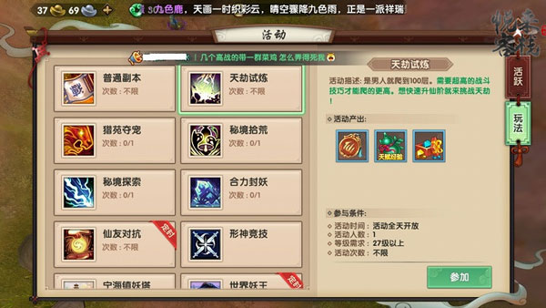 | 仙阶升级条件 | 法宝系统玩法 | 风物志系统介绍 | 天赋系统玩法 |