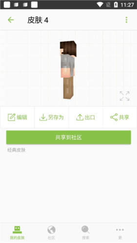 1、打开skinseed,选择“我的皮肤”,点击制作皮肤后,进入编辑界面。