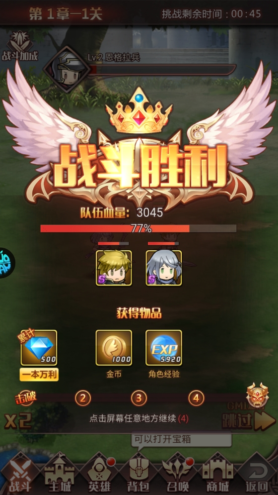 4、战斗胜利后,能获得各类物品奖励,这些资源可用于培养英雄,助力你提升战力对抗暗黑魔龙。