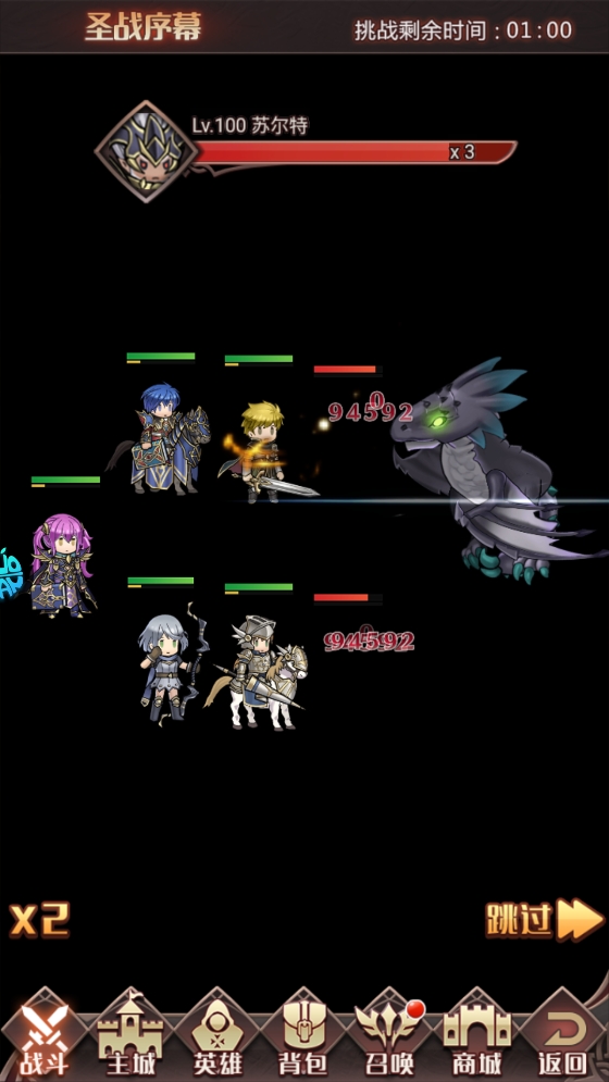 3、进入主线任务后,会自动触发战斗,你可以选择跳过战斗过程,快速推进剧情,体验战棋挂机的轻松玩法。