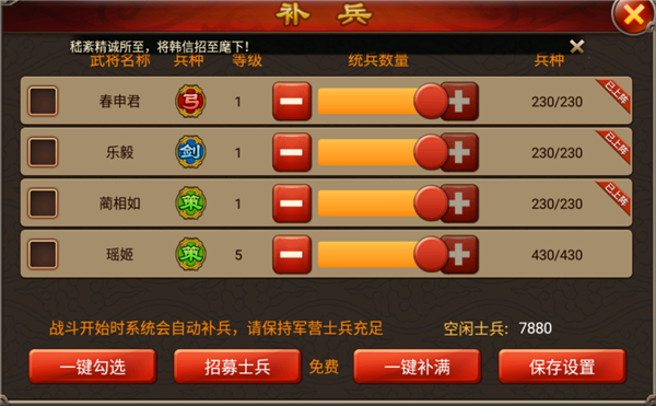 3、兵种相克系统:骑兵、弩兵、战车三大兵种循环克制,结合地形与阵型调整,实现以少胜多的战术逆袭。