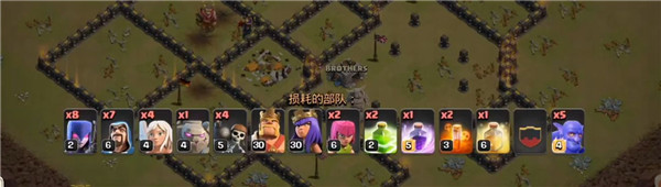另外,这套暴力狗球流是带了天女的,如果弓箭女皇级别太低、正在休息或者正在升级的话,可以将弓箭女皇、天使和炸弹人改成气球和少许的亡灵。