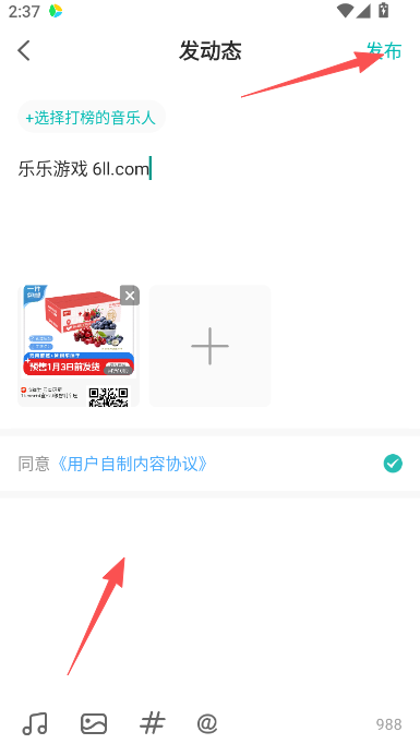 4、编辑内容主题和文本,点击发布完成。