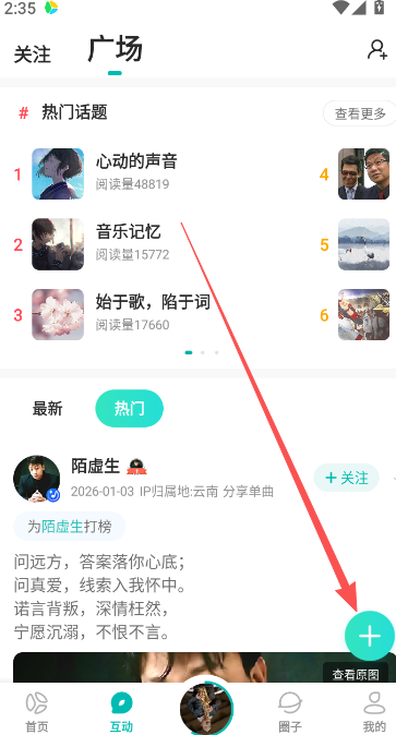 1、点击软件交互部分右下角的+按钮,进入动态发布主页。