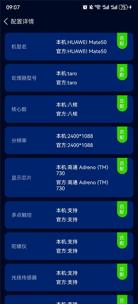 2、接下来,软件将自动将官方配置信息与您当前设备的配置进行匹配,以确定是否匹配。