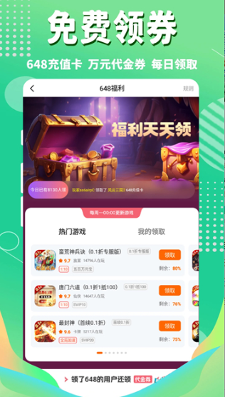 应用程序内提供0.1折扣的超低折扣区,所有游戏续费只需支付原价的0.1折扣即可。