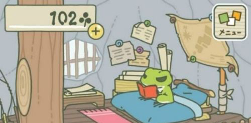 3、然后,旅行青蛙每天走走停停去寻找“蛙生”的意义,并且每次旅行归来都会在床上一直看书,困了也依旧坚持。