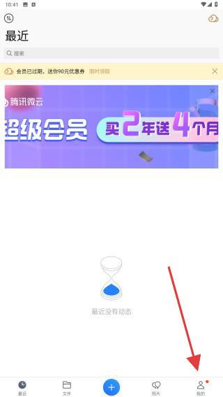 1、打开腾讯微云App,点击页面底部右侧我的功能图标。