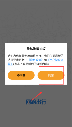 1、首先点击同意并进入应用,开启您的智能出行叫车服务系统;