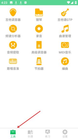 1、点击工具界面,陈列吉他调音器、录音等丰富音乐工具,满足多样音乐操作需求;