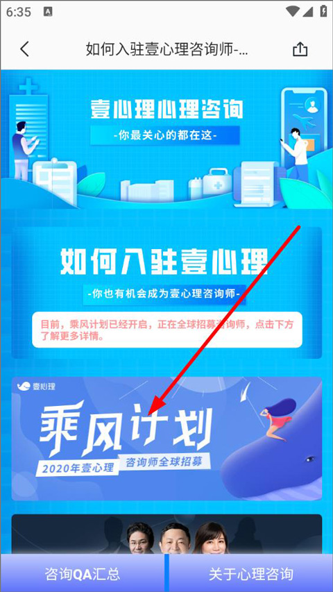 3、进入咨询师入驻详情页面,用户可查看咨询汇总,点击页面中的乘风计划;