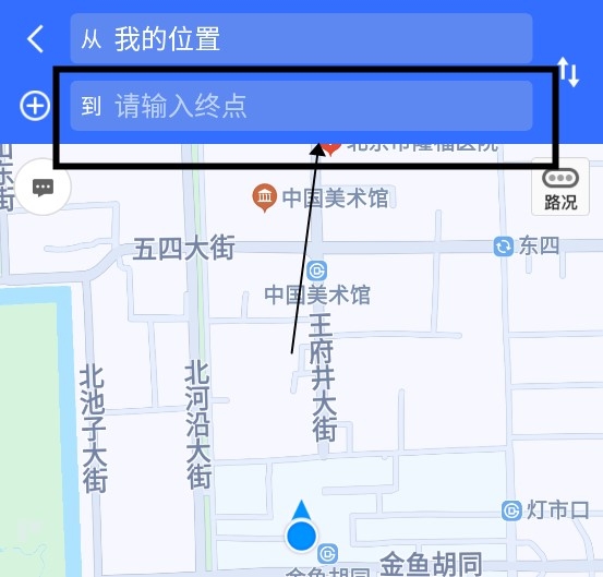 2、页面跳转之后点击上方的终点框输入你的目的地;