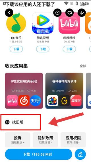 3、在应用详情页面,找到找旧版选项并点击,查看微信历史版本信息,按需选择对应旧版本进行下载安装。