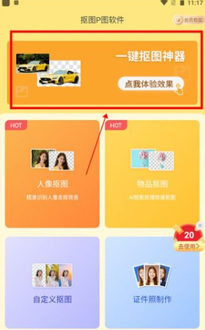 1、在本站下载并安装软件后打开,进入软件后点击一键抠图,如图;