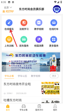 1、在东方时尚会员俱乐部首页,点击【在线报名】按钮,进入班型选择页面;