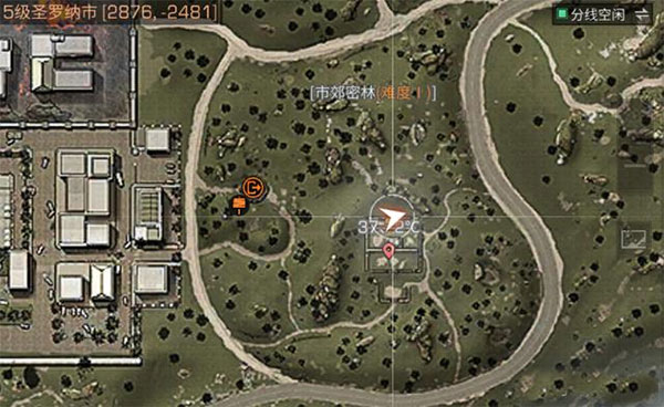 该宝箱固定刷新于市郊密林右下方废墟的墙面上,坐标为:(2876, -2481)。