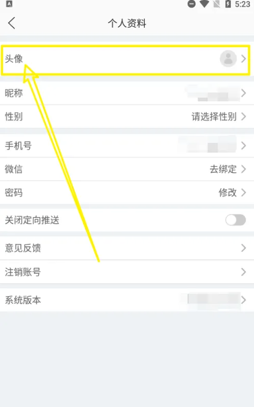 2、在设置,单击【头像】;