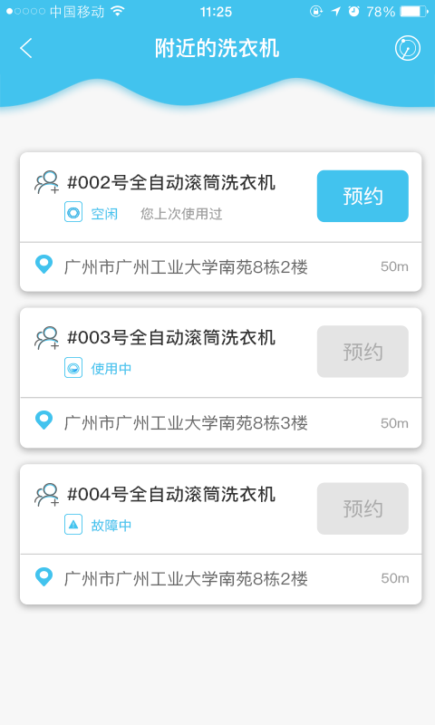 通过手机APP或小程序在线预约空闲洗衣机,无须费时排队等候。