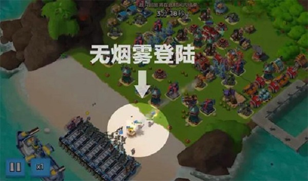 2、动态策略攻防:需侦查敌方防御布局,灵活搭配兵种与战舰技能,如优先清除威胁目标或用烟雾弹掩护部队。