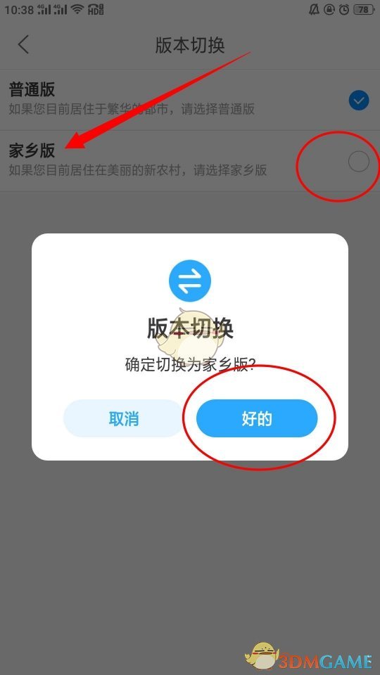 4、在切换版本界面,选择想要切换的版本,在消息弹框中点击好的就切换成功了。