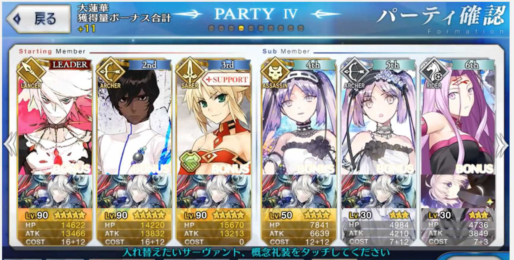 此副本需要平铺牛魔王礼装加掉落,在打的舒服的前提下塞加成英灵,提高大莲华的获取量,节省 AP 圣晶石。