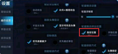 技能轮盘呼出位置分为两种,分别是:指定模式和手指位置;指定模式的含义是长按技能会出现一个技能轮盘,这个轮盘是固定的;手指位置的含义是长按技能会出现一个技能轮盘,这个轮盘会随手指稍微发生偏移。