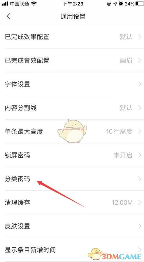 2、在通用设置页面,点击分类密码;