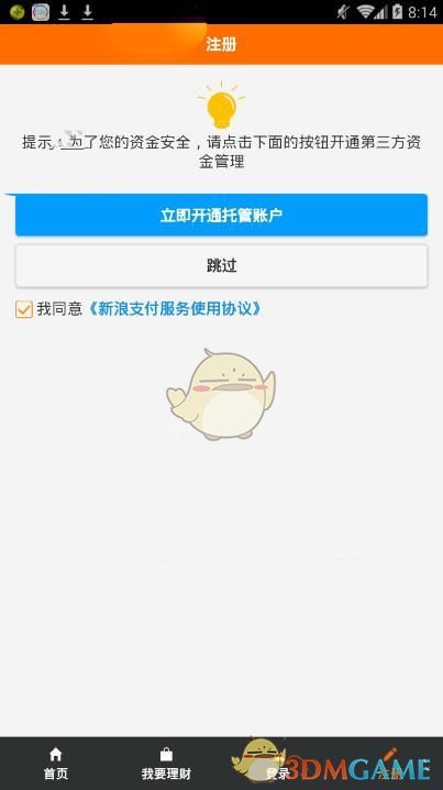 这里用户可以根据需要选择开通托管账户,保障资金安全,也可以直接跳过的