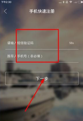 3、输入短信验证码以及推荐人手机号(非必填),点击下一步
