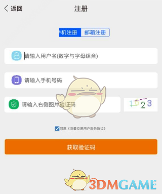 2、在“注册”页面你可以选择手机注册或邮箱注册,例如小编选择了手机注册,你需要设置自己的用户名,然后输入手机号并输入验证码之后点击“获取验证码”,然后将系统发送给你的验证码输入其中后点击“注册”就能够注册成功了哦!