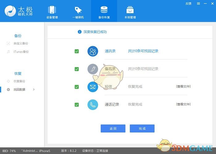 以上就是用太极刷机大师找回误删通讯录的方法介绍,大家可以试试。