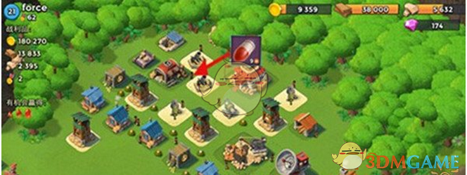 1、不要将两个或者三个防御设施或者建筑设施摆放在一起,这样只要用火炮攻击红色的地方,就可以炸掉这三个建筑物。