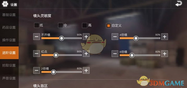 进阶设置,先选择低中高其中的一个灵敏度,在比赛中根据自己在调整适合自己最舒服的一些灵敏度。我选择的大家也可以尝试下~