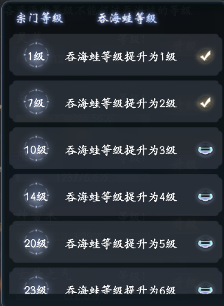 注意,吞海蛙的等级会随着宗门等级成长而成长。