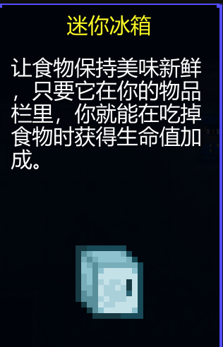 1、介绍:对背包中的食物回血量有20%的加成效果,虽然有点占背包,但是实际效果还是挺大的。