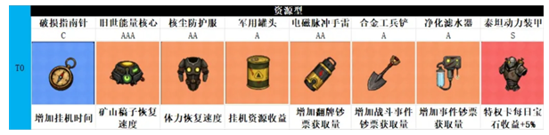 作为养成型游戏,资源为王,所以能带来资源增益的藏品可作为第一优先级升星核心以 恢复速度 资源收益 钞票获取为主,第一个就是破损指南针,品质低 收益高,主要是好升级,获取的收益也很稳定;其次就是旧世能量核心,这个也很不错,优先级也是非常高的,挖矿的资源很可观;再就是核尘防护服,这个很重要 玩家也可以优先考虑,毕竟体力是这个游戏的核心,没有体力什么都干不了。