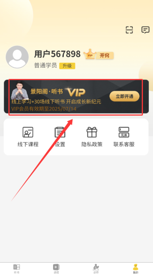 进入景阳阁听书首页,找到页面里类似“我的”“个人中心”的入口并点击进入,在个人中心页面查找“会员中心”“开通会员”或相关选项,点击进入后能看到不同会员套餐(如月度、季度、年度会员),选择心仪套餐,按提示完成支付操作,支付成功后即可开通会员享受相应权益。