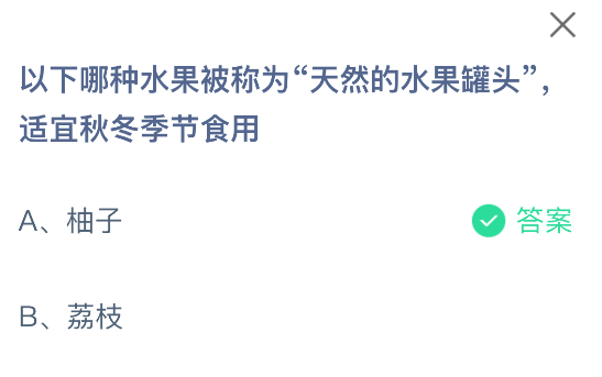以下哪种水果被称为“天然的水果罐头”,适宜秋冬季节食用?支付宝小鸡课堂开课啦!每天花一分钟答题赚饲料,喂喂小鸡就能贡献爱心啦!轻松又意义十足!2025年9月23日蚂蚁庄园的小鸡课堂题目正确答案是【柚子】,在水果中,沙田柚因果皮厚、果肉不易变质等特点,能在常温下长时间保存,有着“天然水果罐头”的美誉。