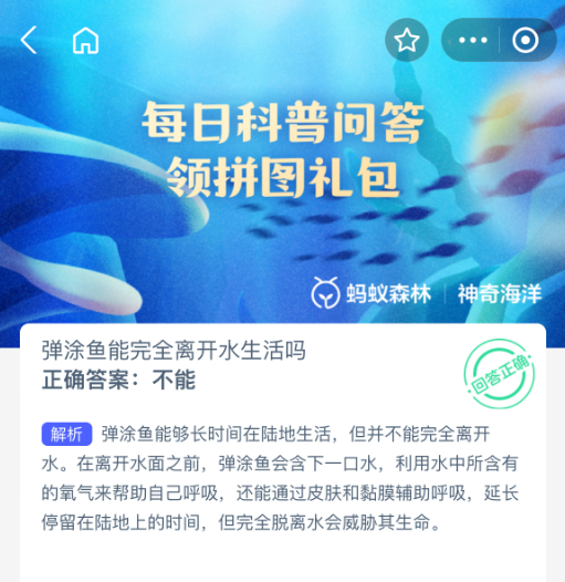 以上就是弹涂鱼能完全离开水生活吗?神奇海洋今天答案最新2025年9月22日分享,更多相关攻略内容,请点击关注3DM手游网更新!