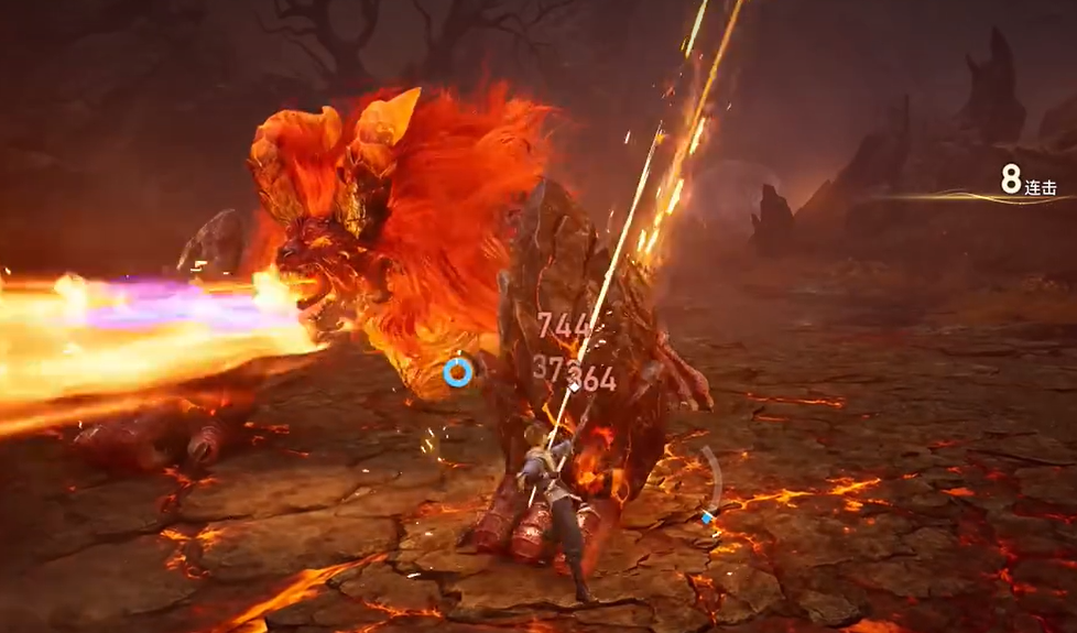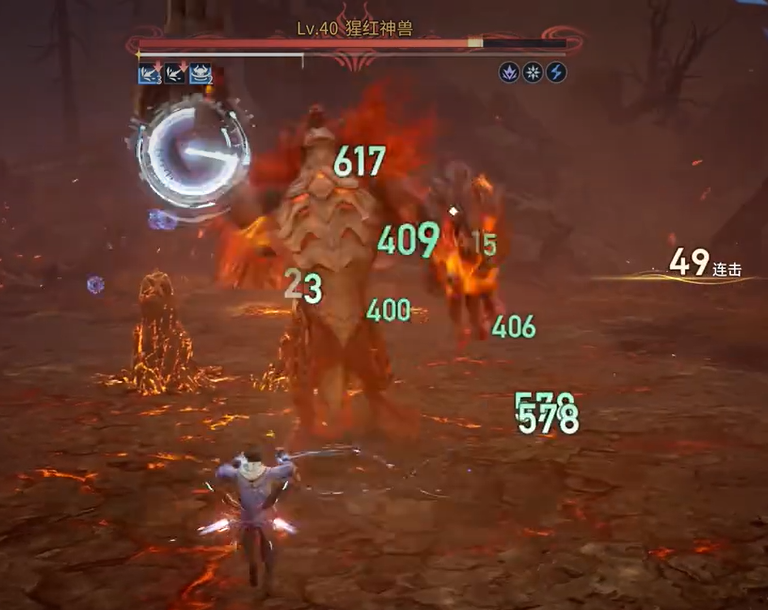 由于猩红神兽的攻击范围是有限的,对于其发起进攻的方式也需要做出特殊的变化。猩红神兽的普通攻击方式,分别是扇形区域的攻击动作,另一种则是直线方向的攻击动作。当他释放扇形区域的攻击动作时,只需要向侧面移动就能够躲避他的各种伤害,而在直线攻击动作中,玩家则需要智慧的利用地形因素来帮助自己阻挡他的所有攻击。精准的对神兽的攻击位置和攻击方向做出预判,才能够正确的操控英雄的走位。神兽每一次发起进攻时也会有相应的准备动作,只需要细细观察就可以了。